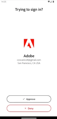 Log sikkert ind på din Adobe-konto med et enkelt tryk via Adobe Account Access. Modtag en push-meddelelse, godkend den, og få hurtig adgang. Din loginoplevelse er nu nemmere og mere sikker end nogensinde.