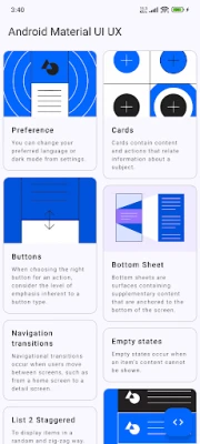 Denne app fungerer som en værdifuld reference for Android-udviklere. Den præsenterer implementeringseksempler, der er baseret på de officielle Material Design-retningslinjer. Få indsigt og inspiration til at skabe moderne og intuitive Android-applikationer.