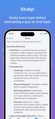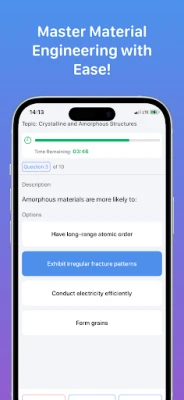 For at optimere din læringsoplevelse tilbyder **Material Engineering Quiz App** fleksible quizformer. Du kan træne i dit eget tempo, tage tidskonkurrencer for at skærpe din reaktionsevne eller fokusere på specifikke emner for at styrke dine svage punkter. Appens avancerede fremskridtssporing giver dig desuden en personlig analyse af dine styrker og udfordringer. Følg din udvikling med dybdegående statistik, og identificer præcist, hvor du skal sætte ind for at opnå fuld mestring. Lad **Material Engineering Quiz App** være din partner på rejsen mod en dybere forståelse af materialevidenskabens fundamentale principper og fremtidige innovationer.