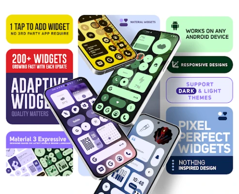 Træd ind i en verden, hvor din startskærm er et lærred for personligt udtryk. Material You Widgets transformerer din telefonoplevelse med en enestående kollektion af widgets, dybt inspireret af Googles banebrydende Material 3-designsprog. Glem komplicerede opsætninger og behovet for tredjepartsapps; med Material You Widgets er skønhed og funktionalitet indbygget. Du skal blot vælge din favorit blandt over 200 omhyggeligt designede widgets – et antal der konstant vokser – trykke for at tilføje, og se din skærm komme til live med det samme. Material You Widgets leverer en sømløs integration, der gør personalisering lettere end nogensinde før.
