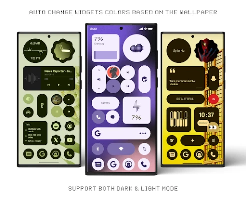 Oplev Material Expressive Version af Everything Widgets. Disse widgets tilpasser farverne efter dit baggrundsbillede og skifter problemfrit mellem mørk og lys tilstand. Gør din startskærm frisk, dynamisk og helt unik.
