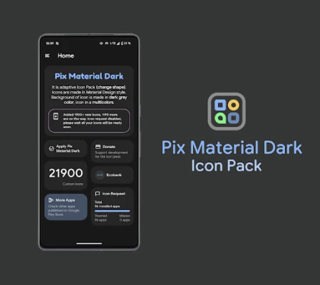 Oplev friheden ved adaptive ikoner, der ikke kun skifter farve, men også form, hvilket sikrer en harmonisk integration med enhver launcher, der understøtter dynamiske designs. Ud over de dynamiske ikoner får du adgang til en eksklusiv samling af tematiske baggrunde, der er nøje udvalgt til at komplementere ikonpakkens dybe farver og elegante linjer. Fuldend din enheds makeover med matchende ur-widgets, der smelter perfekt sammen med det overordnede tema og skaber et fuldendt og ensartet look på din startskærm.